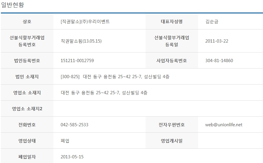 A. 청주에 있던 우리이벤트와 우리상조이벤트는 거의 동일한 사업자입니다.